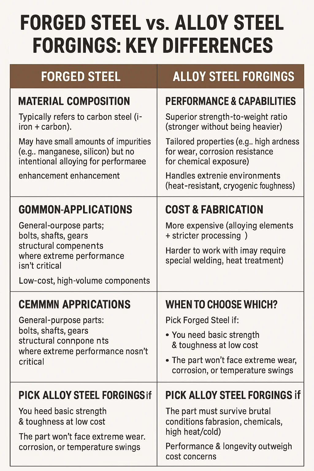 Кованая сталь: Обычно относится к углеродистой стали (углерод из железа). Может иметь небольшое количество примесей (например, марганец, кремний), но без преднамеренного легирования для повышения производительности.